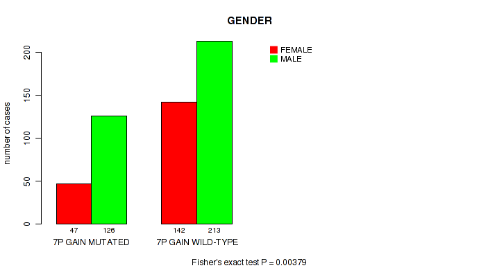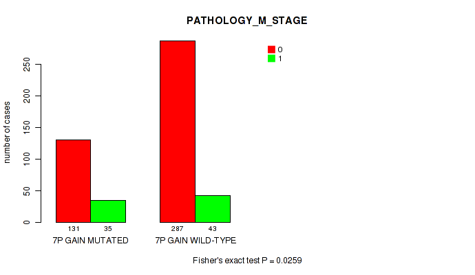 7p gain cnv correlated to 'PATHOLOGY_M_STAGE' and 'GENDER'.