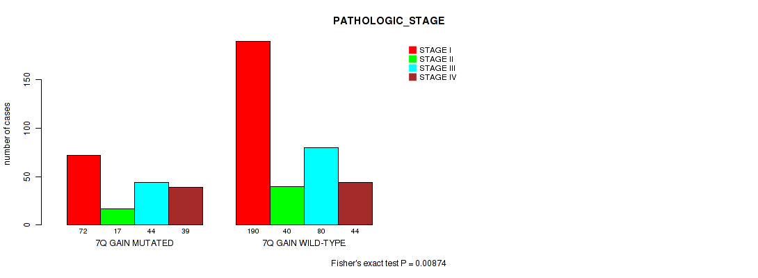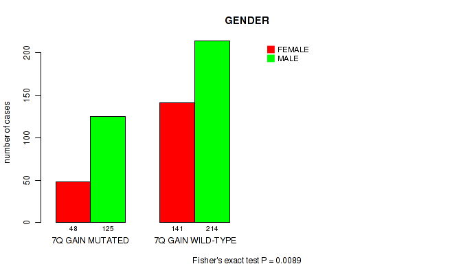 7q gain cnv correlated to 'PATHOLOGIC_STAGE', 'PATHOLOGY_M_STAGE', and 'GENDER'.