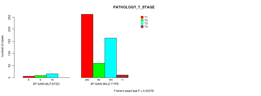8p gain cnv correlated to 'PATHOLOGIC_STAGE' and 'PATHOLOGY_T_STAGE'.