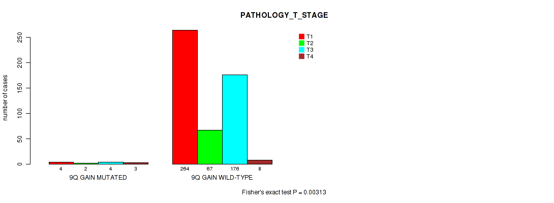 9q gain cnv correlated to 'PATHOLOGY_T_STAGE'.