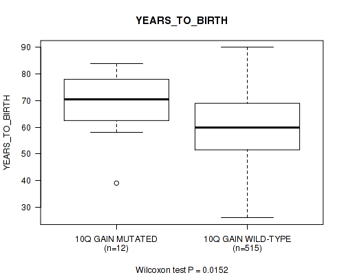 10q gain cnv correlated to 'YEARS_TO_BIRTH'.