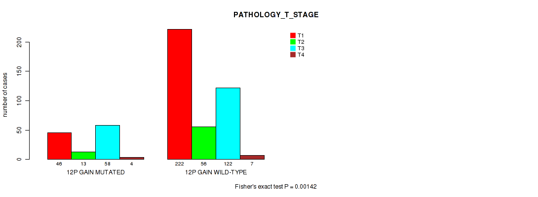 11p gain cnv correlated to 'PATHOLOGIC_STAGE' and 'PATHOLOGY_T_STAGE'.
