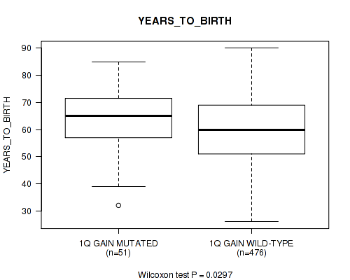 1q gain cnv correlated to 'YEARS_TO_BIRTH'.