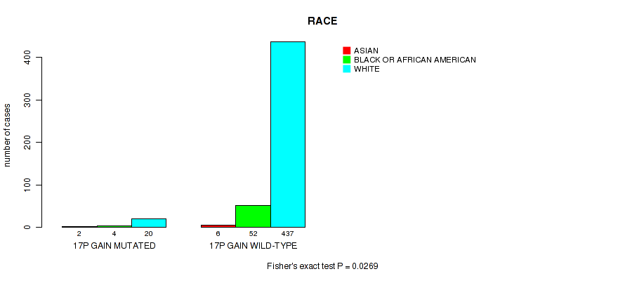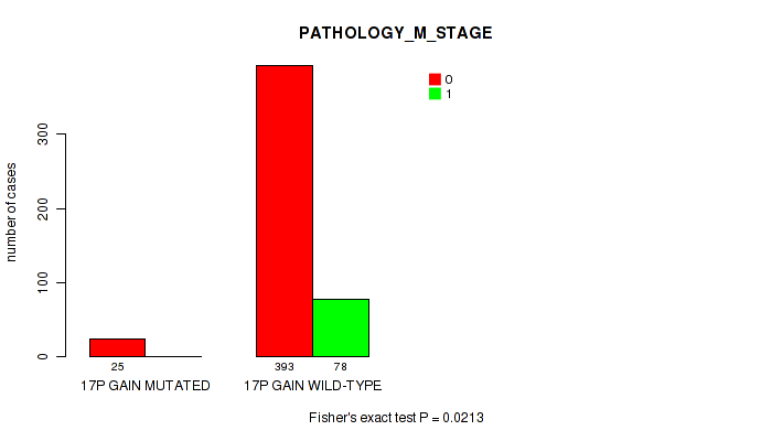 17p gain cnv correlated to 'PATHOLOGY_M_STAGE' and 'RACE'.