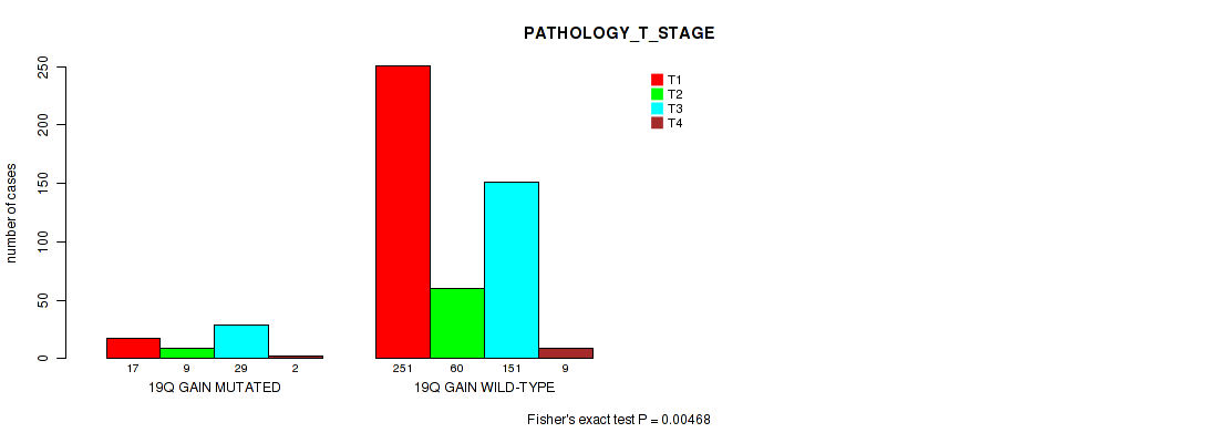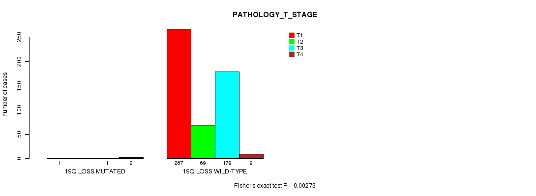 Figure S123. Get High-res Image Gene #74: '19q loss' versus Clinical Feature #4: 'PATHOLOGY_T_STAGE'