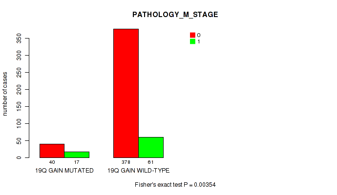 19p gain cnv correlated to 'PATHOLOGIC_STAGE', 'PATHOLOGY_T_STAGE', and 'PATHOLOGY_M_STAGE'.