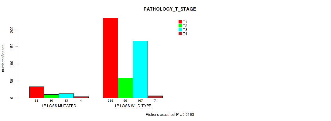 1p loss cnv correlated to 'PATHOLOGY_T_STAGE'.