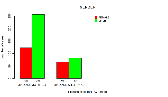 3p loss cnv correlated to 'PATHOLOGY_T_STAGE' and 'GENDER'.