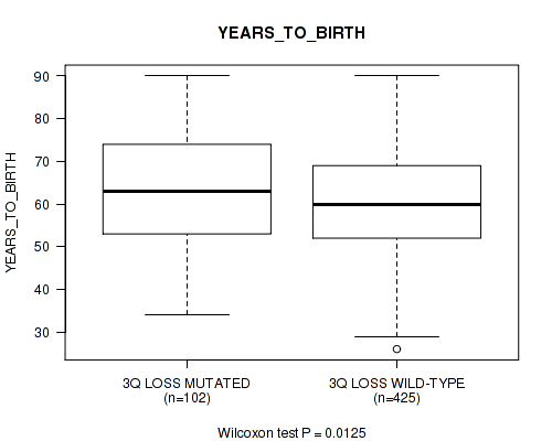 3q loss cnv correlated to 'YEARS_TO_BIRTH' and 'GENDER'.