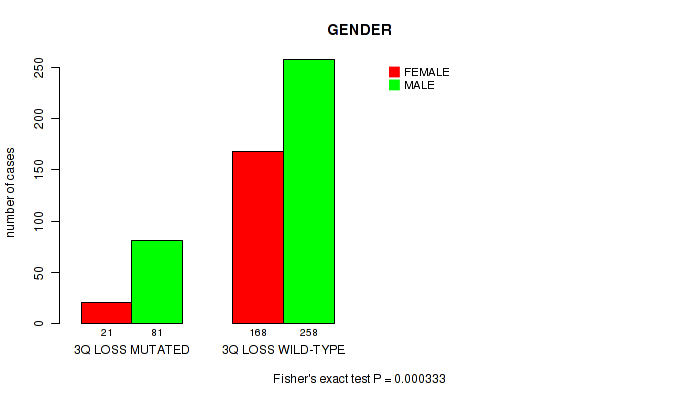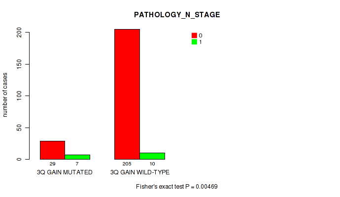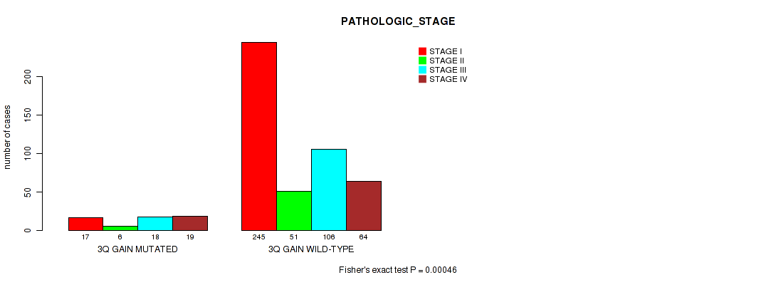 3q gain cnv correlated to 'PATHOLOGIC_STAGE', 'PATHOLOGY_T_STAGE', 'PATHOLOGY_N_STAGE', and 'PATHOLOGY_M_STAGE'.