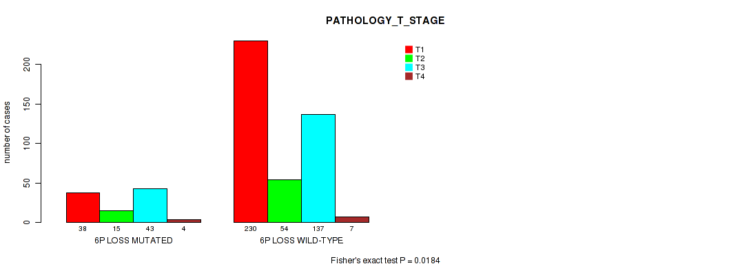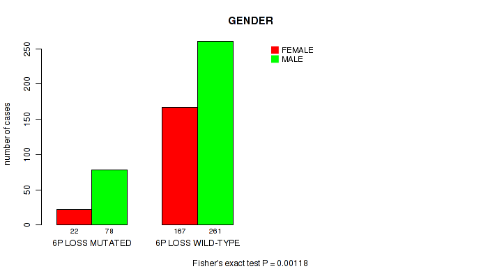 6p loss cnv correlated to 'PATHOLOGY_T_STAGE', 'PATHOLOGY_N_STAGE', and 'GENDER'.