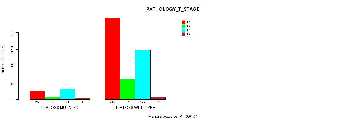 10p loss cnv correlated to 'PATHOLOGY_T_STAGE'.