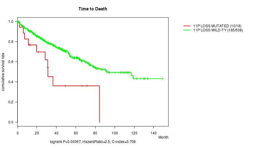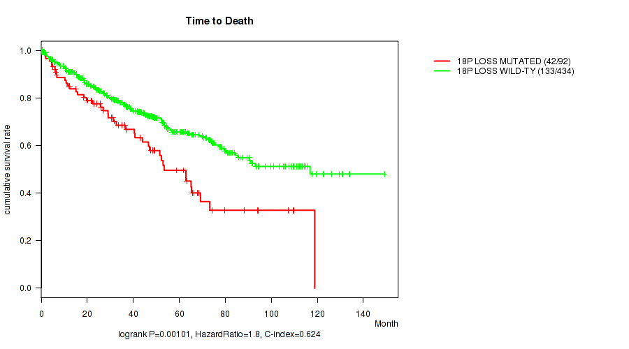 Figure S113. Get High-res Image Gene #71: '18p loss' versus Clinical Feature #1: 'Time to Death'
