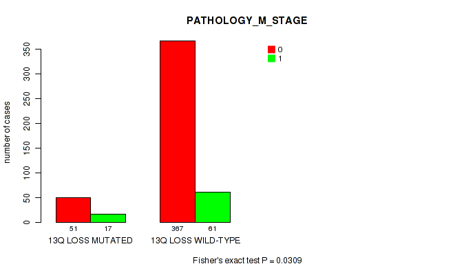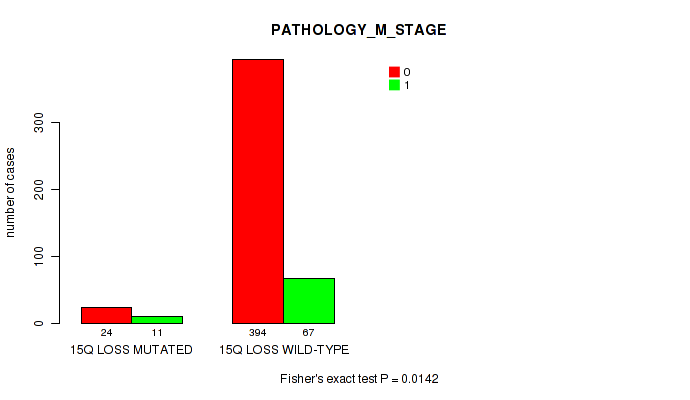 Figure S110. Get High-res Image Gene #66: '15q loss' versus Clinical Feature #6: 'PATHOLOGY_M_STAGE'