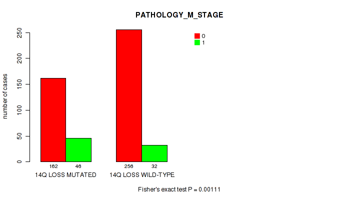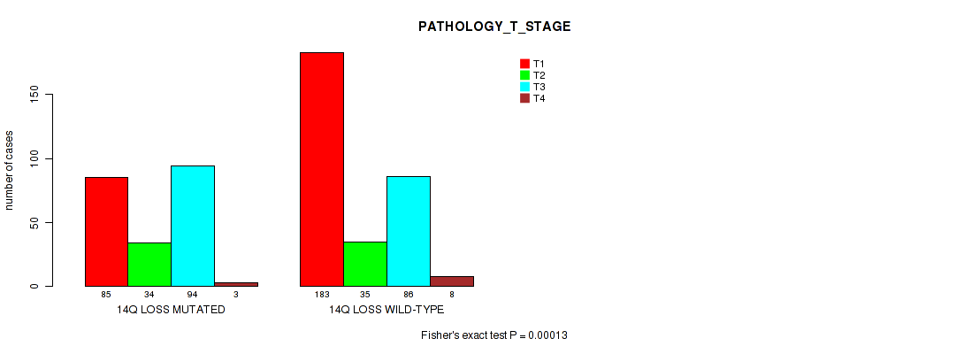 14q gain cnv correlated to 'PATHOLOGY_T_STAGE'.
