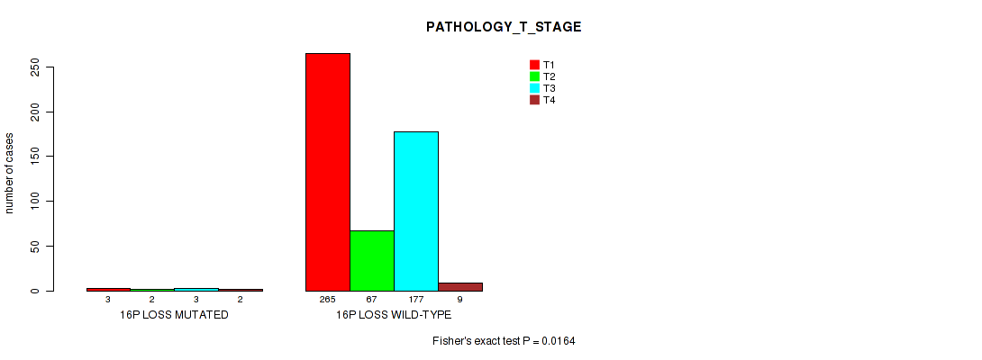 16p loss cnv correlated to 'PATHOLOGY_T_STAGE'.