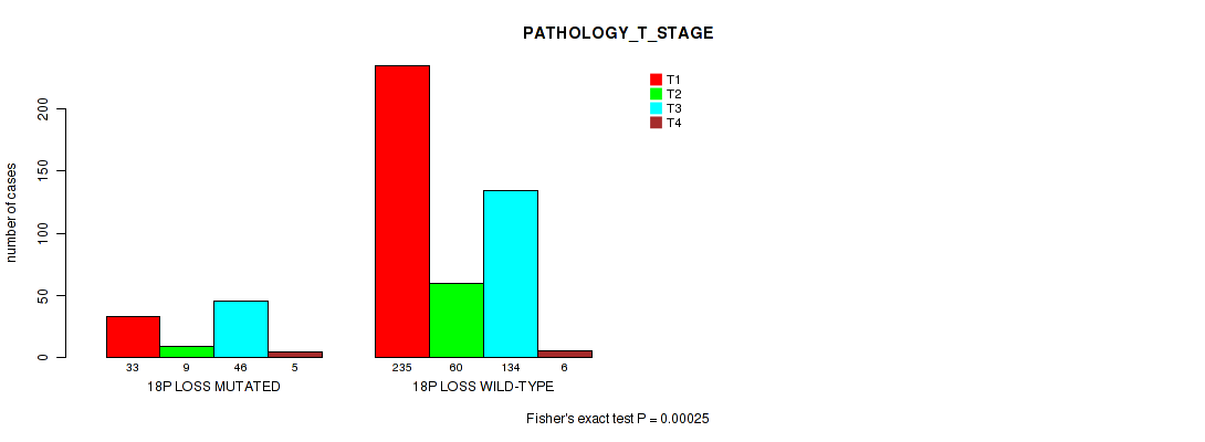 Figure S115. Get High-res Image Gene #71: '18p loss' versus Clinical Feature #4: 'PATHOLOGY_T_STAGE'
