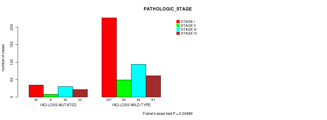 Figure S117. Get High-res Image Gene #72: '18q loss' versus Clinical Feature #3: 'PATHOLOGIC_STAGE'