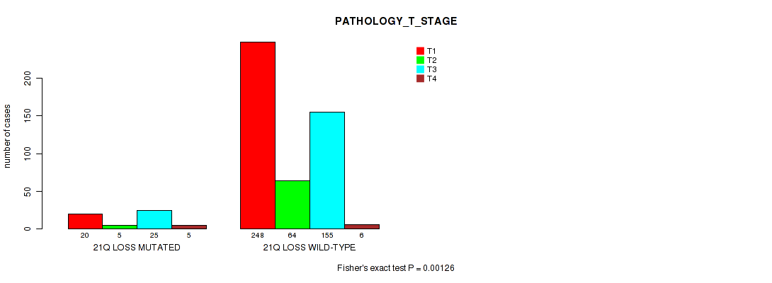 21q loss cnv correlated to 'PATHOLOGY_T_STAGE'.