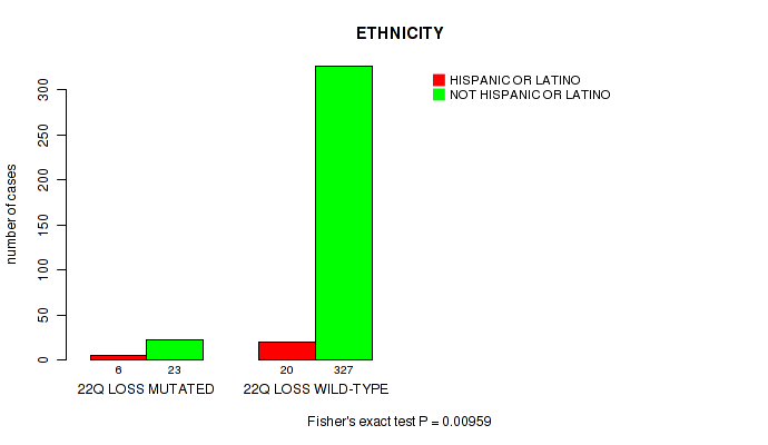 Figure S127. Get High-res Image Gene #78: '22q loss' versus Clinical Feature #12: 'ETHNICITY'