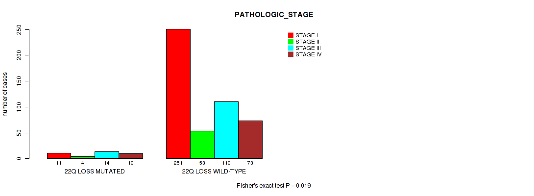 Figure S126. Get High-res Image Gene #78: '22q loss' versus Clinical Feature #3: 'PATHOLOGIC_STAGE'
