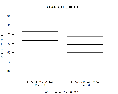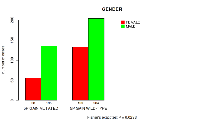 5p gain cnv correlated to 'YEARS_TO_BIRTH' and 'GENDER'.