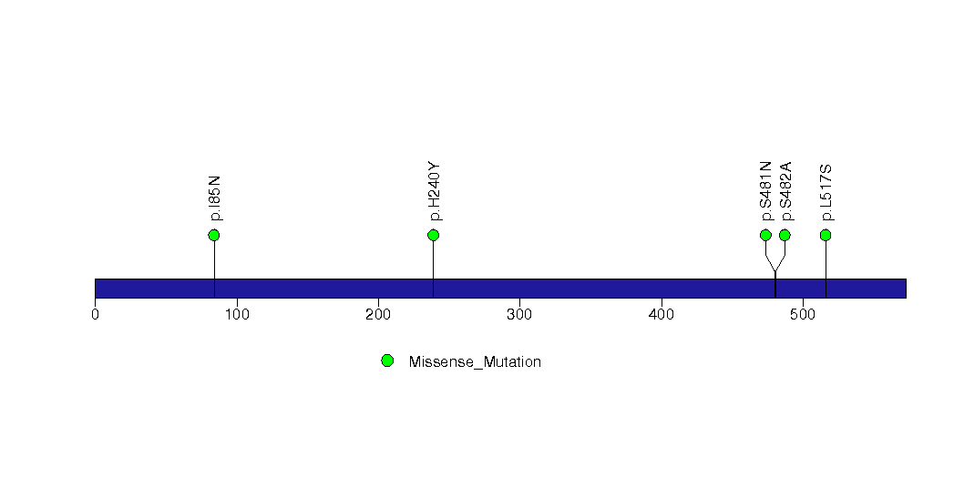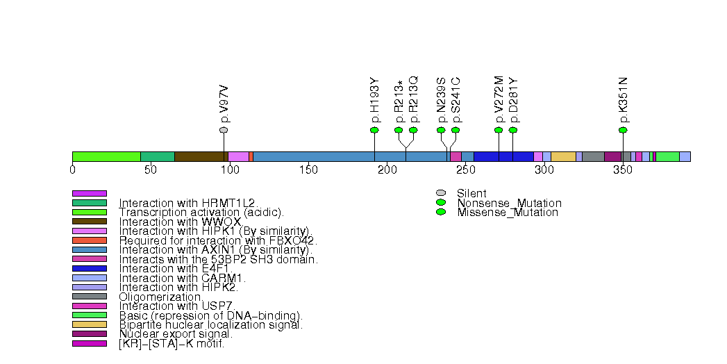Figure S6. This figure depicts the distribution of mutations and mutation types across the TP53 significant gene.