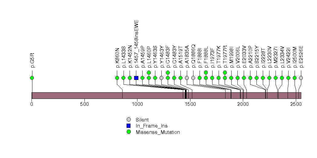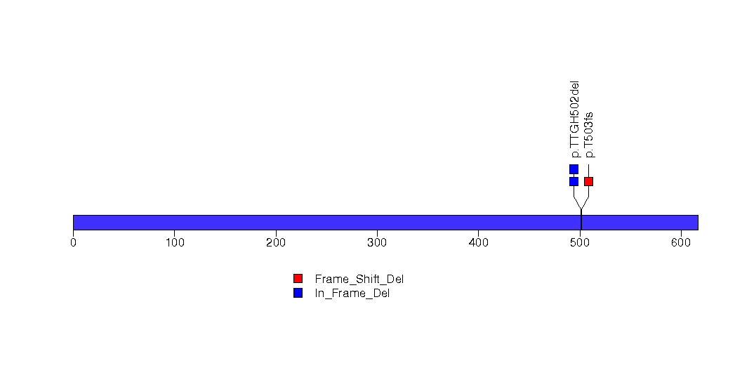 Figure S5. This figure depicts the distribution of mutations and mutation types across the MTOR significant gene.