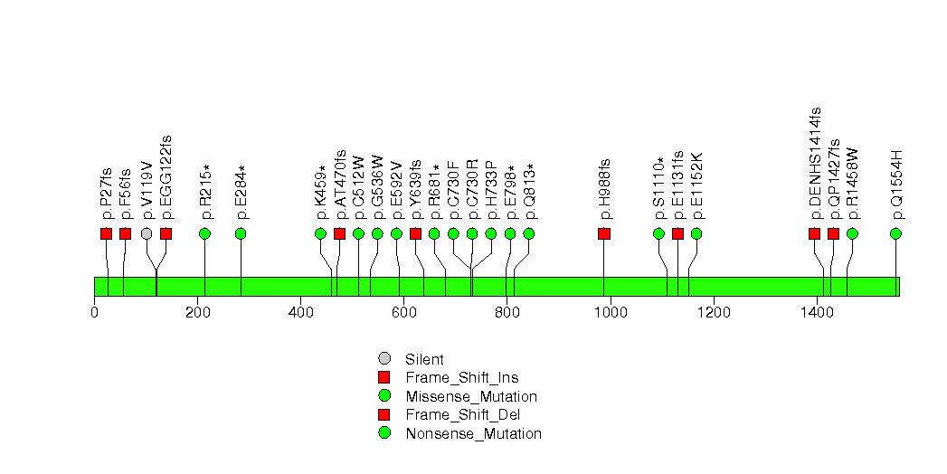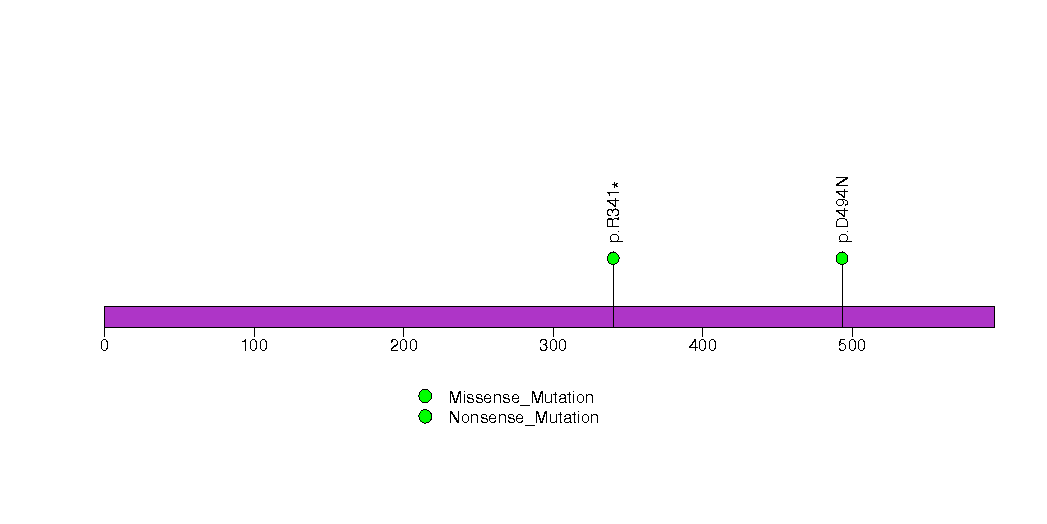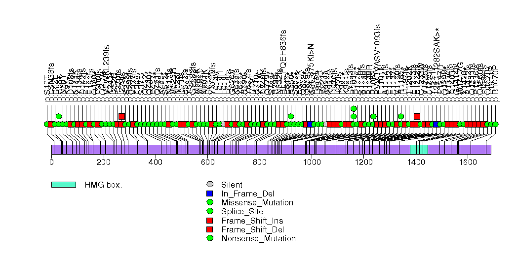 Figure S8. This figure depicts the distribution of mutations and mutation types across the NEFH significant gene.