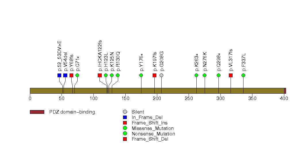 Figure S7. This figure depicts the distribution of mutations and mutation types across the PTEN significant gene.