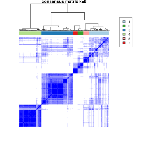 Figure 4. Get High-res Image The consensus matrix after clustering shows 6 clusters with limited overlap between clusters.