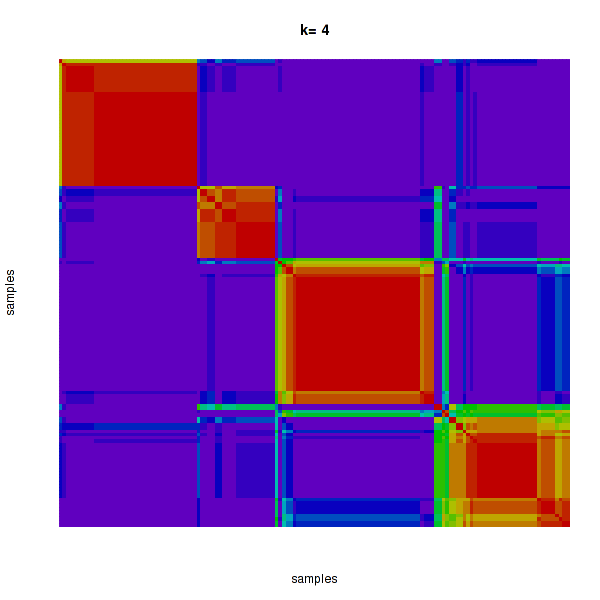 Figure 4. Get High-res Image The consensus matrix after clustering shows 4 clusters with limited overlap between clusters.