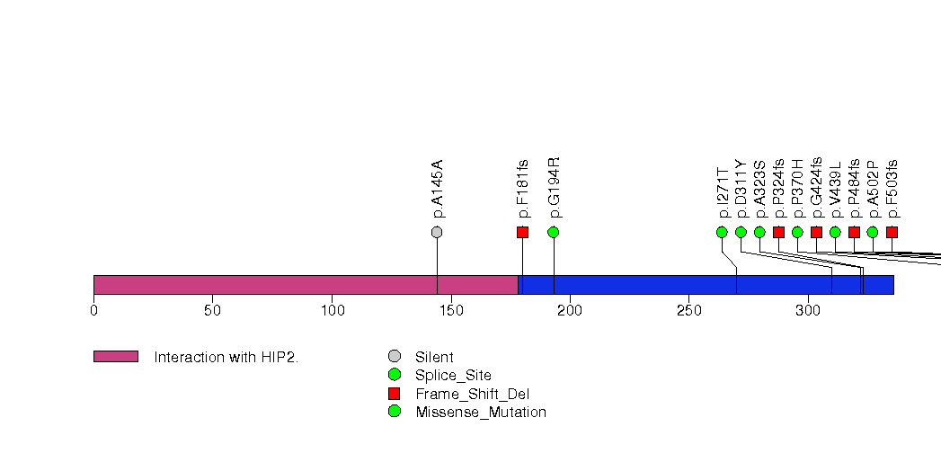 Figure S2. This figure depicts the distribution of mutations and mutation types across the AR significant gene.