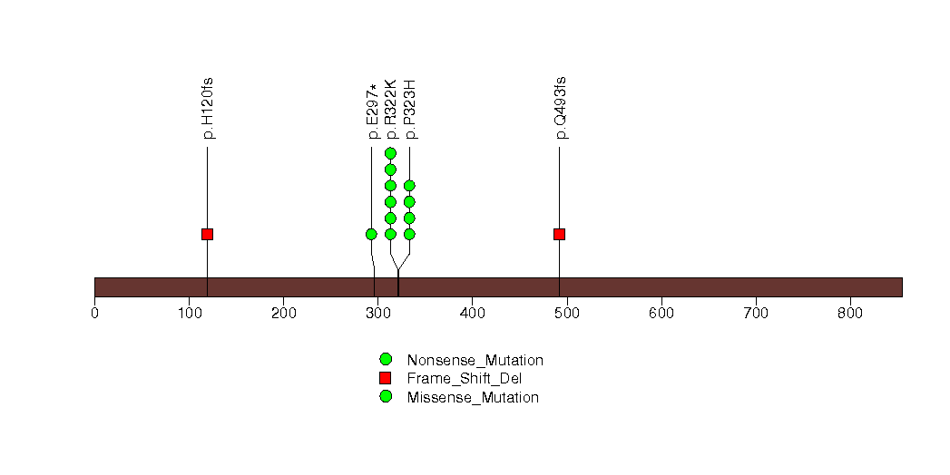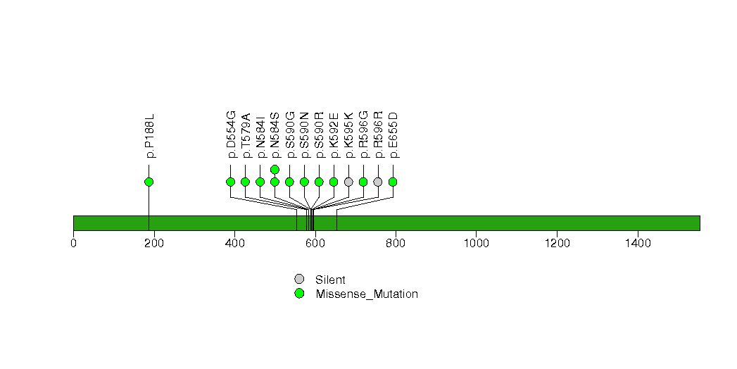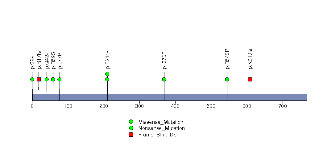 Figure S19. This figure depicts the distribution of mutations and mutation types across the NEFH significant gene.