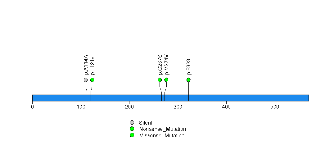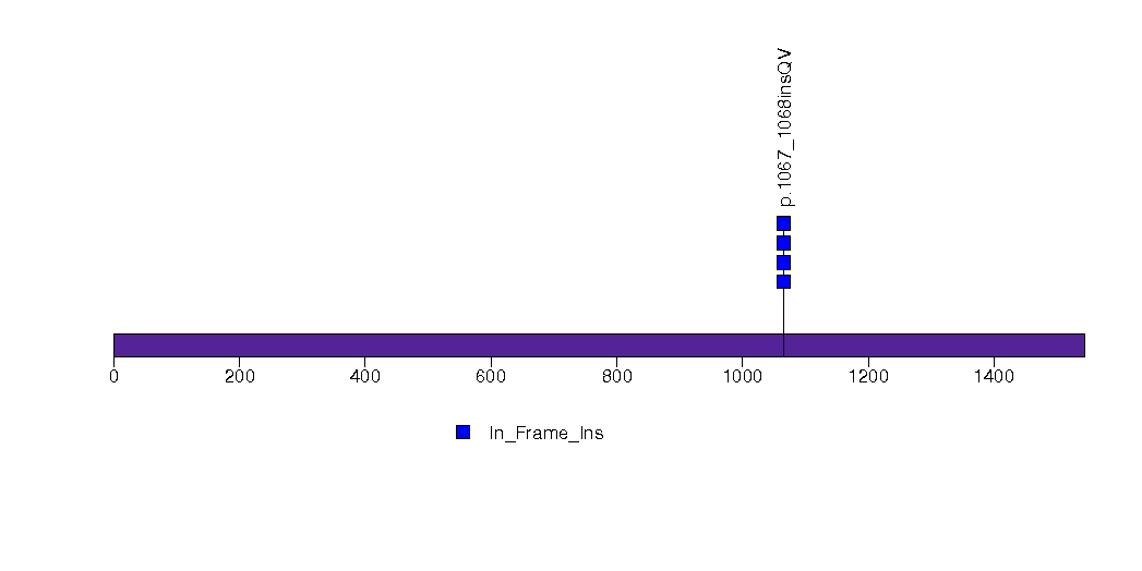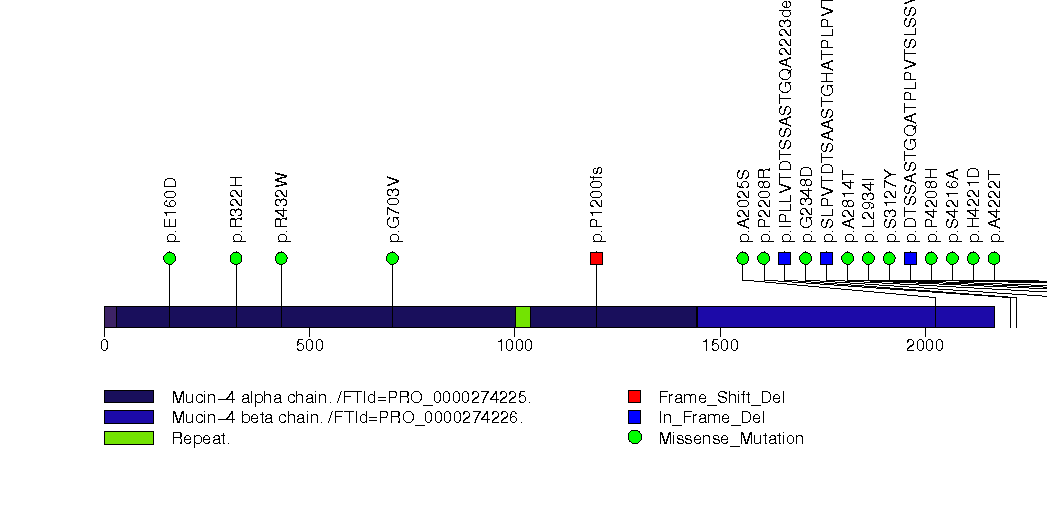 Figure S7. This figure depicts the distribution of mutations and mutation types across the MUC4 significant gene.