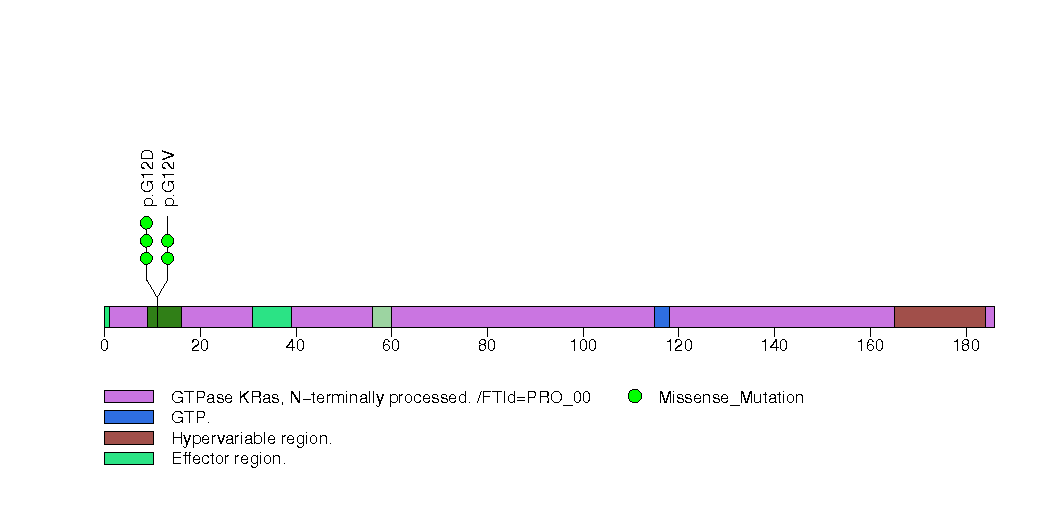 Figure S5. This figure depicts the distribution of mutations and mutation types across the KRAS significant gene.