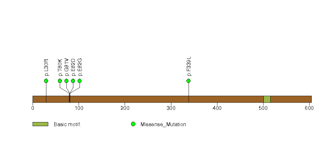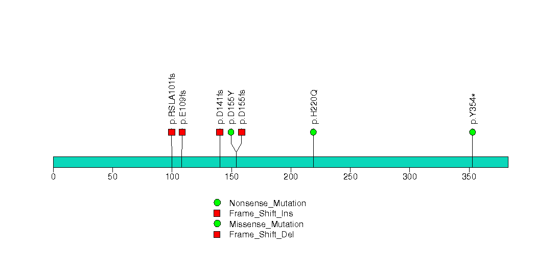Figure S22. This figure depicts the distribution of mutations and mutation types across the FAM20C significant gene.