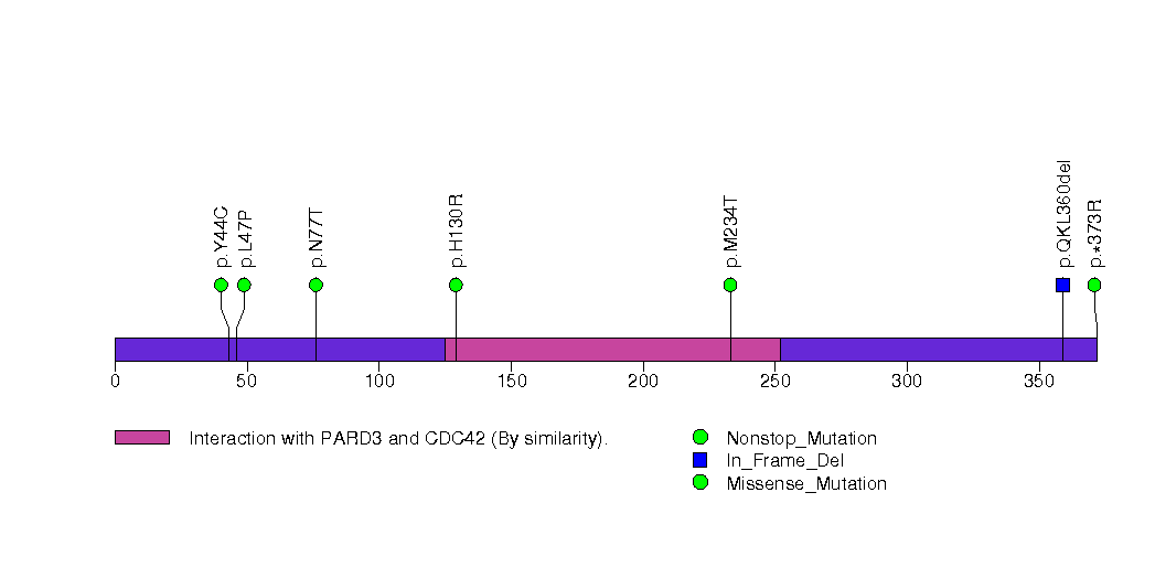 Figure S15. This figure depicts the distribution of mutations and mutation types across the PARD6B significant gene.
