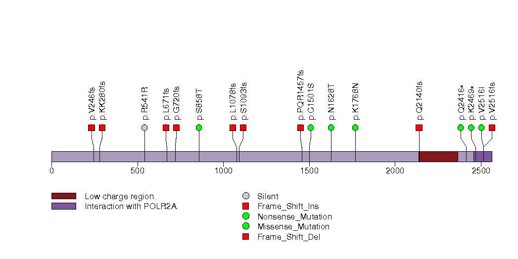 Figure S3. This figure depicts the distribution of mutations and mutation types across the PCF11 significant gene.