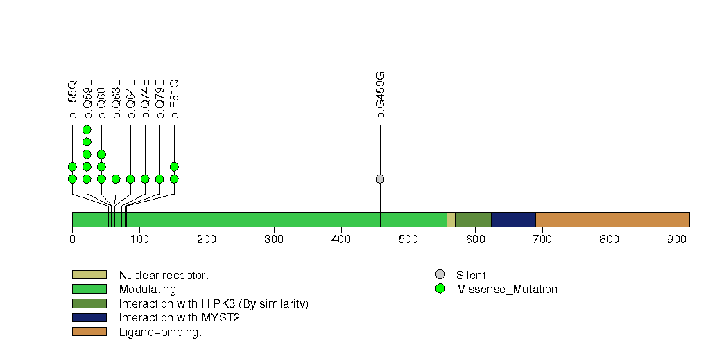 Figure S13. This figure depicts the distribution of mutations and mutation types across the AR significant gene.