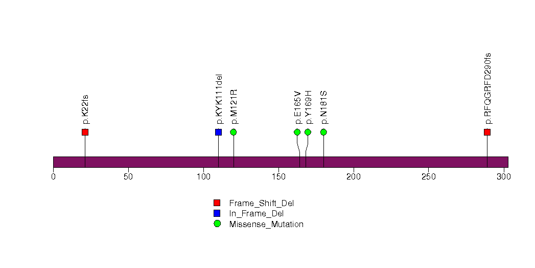 Figure S22. This figure depicts the distribution of mutations and mutation types across the PBRM1 significant gene.