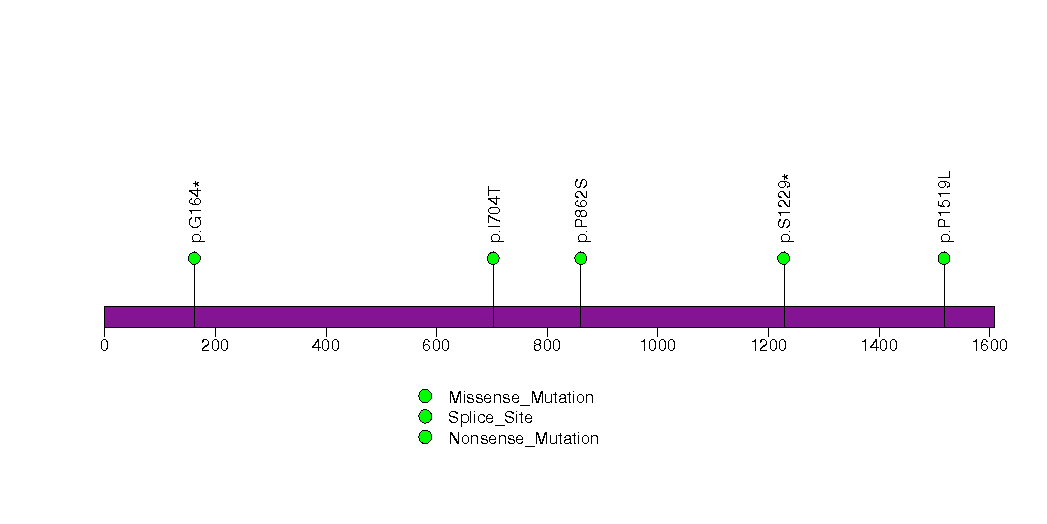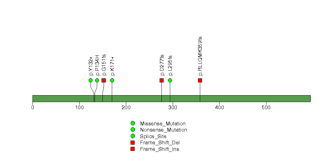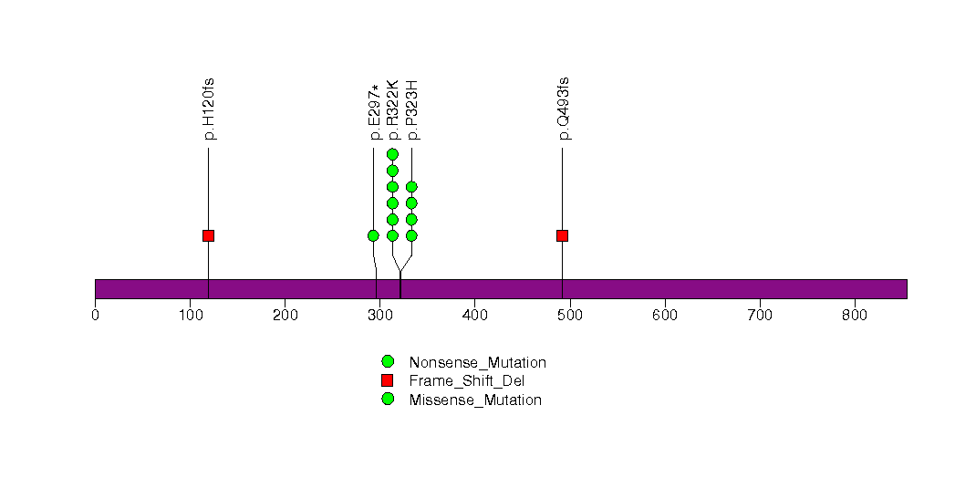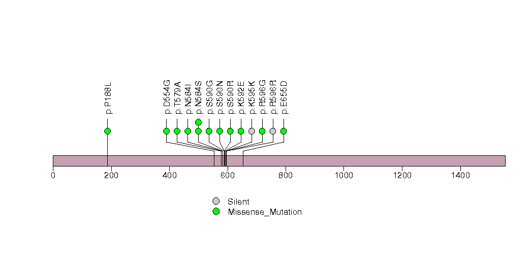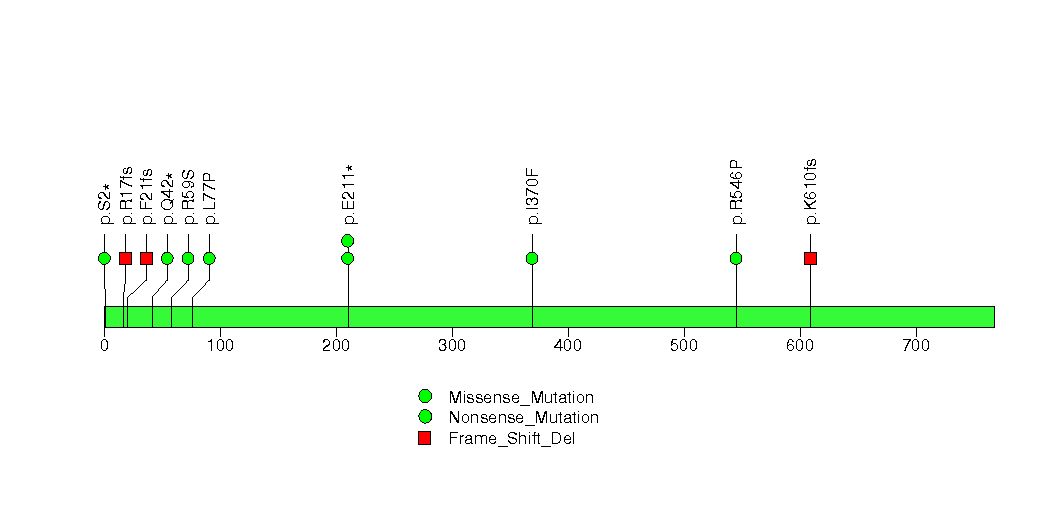 Figure S5. This figure depicts the distribution of mutations and mutation types across the NEFH significant gene.