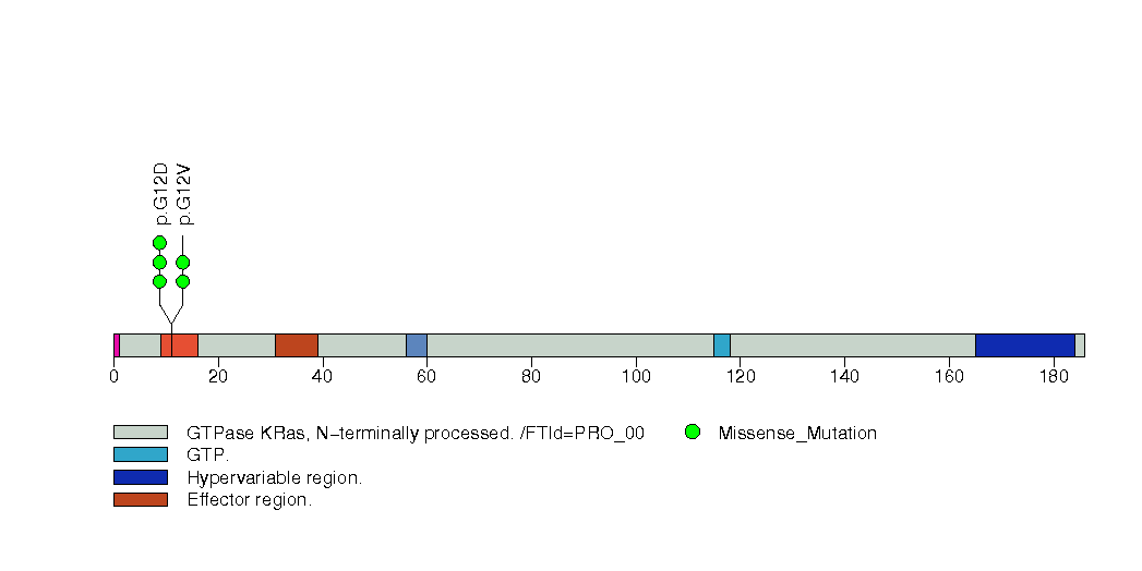 Figure S6. This figure depicts the distribution of mutations and mutation types across the KRAS significant gene.