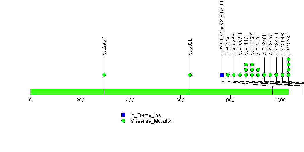 Figure S4. This figure depicts the distribution of mutations and mutation types across the MET significant gene.