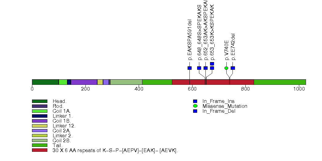 Figure S18. This figure depicts the distribution of mutations and mutation types across the KRT2 significant gene.