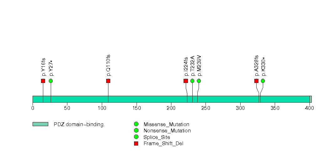 Figure S2. This figure depicts the distribution of mutations and mutation types across the PTEN significant gene.