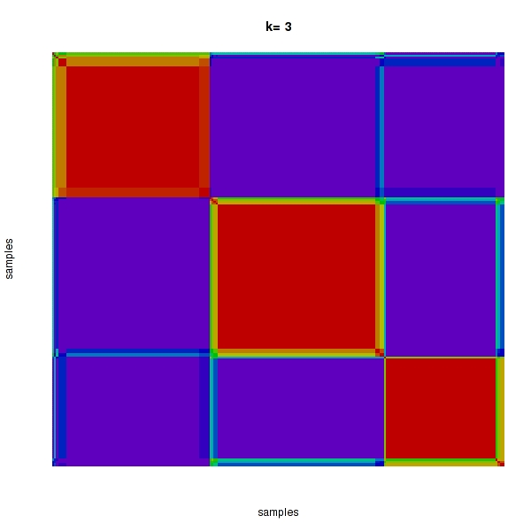 Figure 4. Get High-res Image The consensus matrix after clustering shows 3 clusters with limited overlap between clusters.