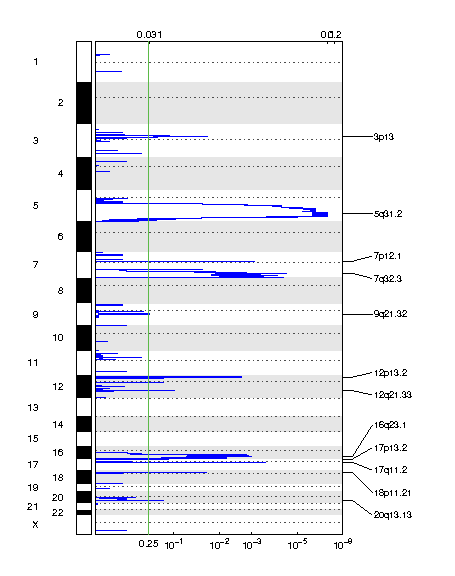 | 12p13.2 | 0.0023827 | 0.0024153 | chr12:11415451-13714180 | 28 |