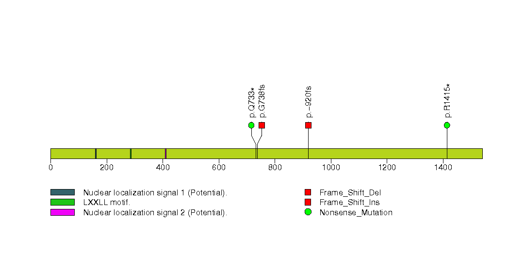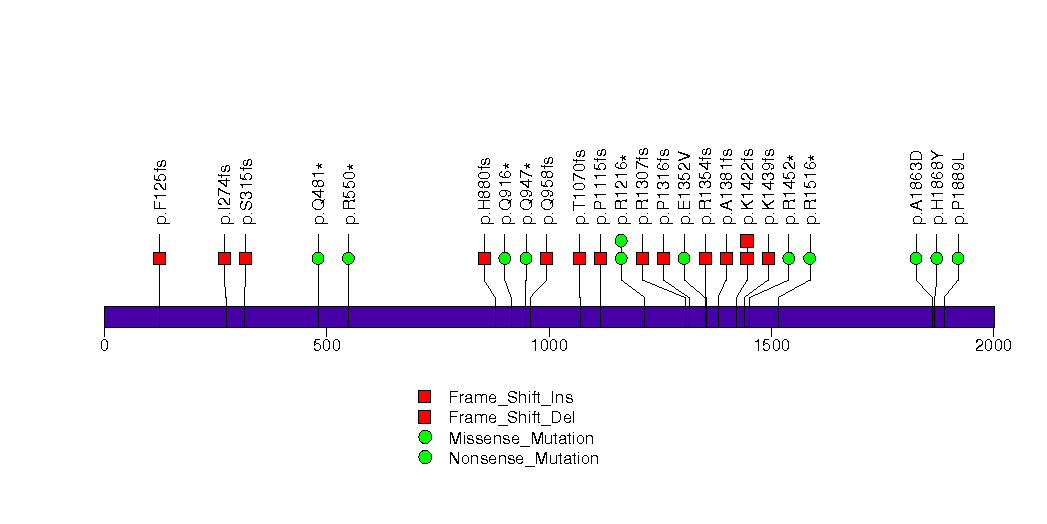 Figure S8. This figure depicts the distribution of mutations and mutation types across the WT1 significant gene.