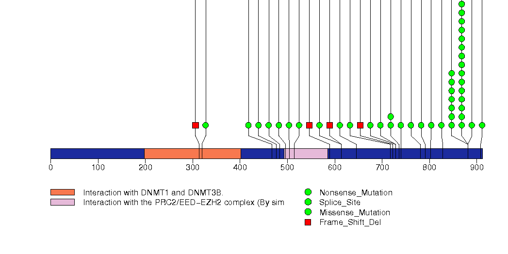 Figure S18. This figure depicts the distribution of mutations and mutation types across the EZH2 significant gene.